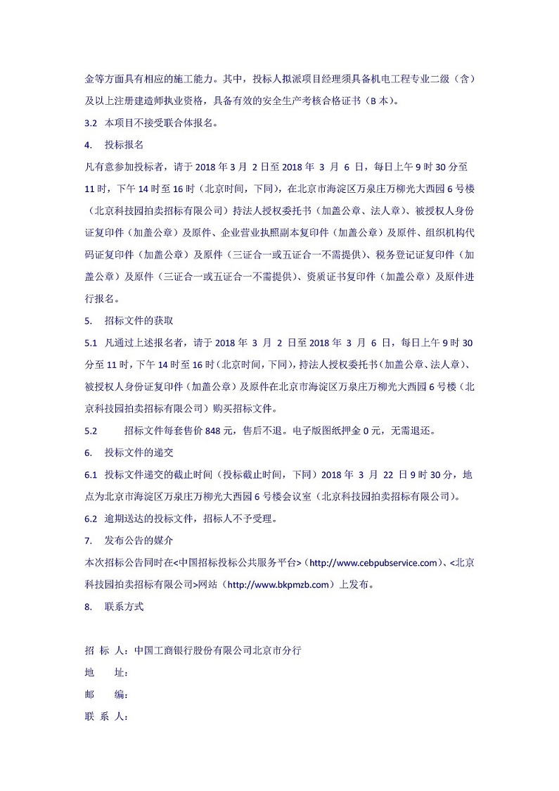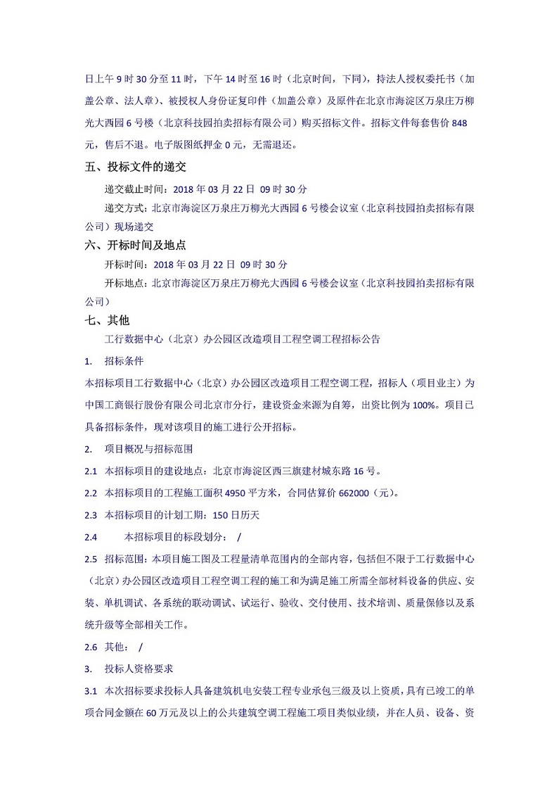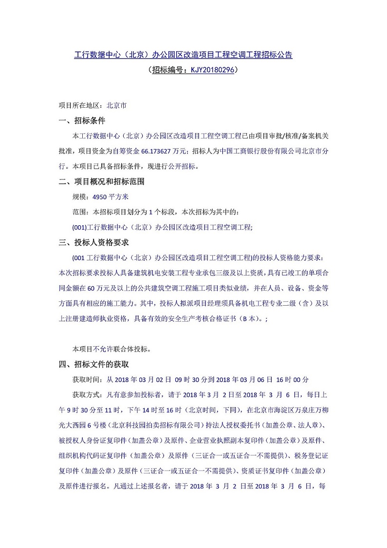 工行数据中心(北京)办公园区改造项目工程空调工程招标公告