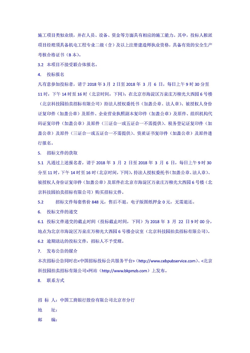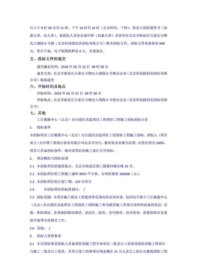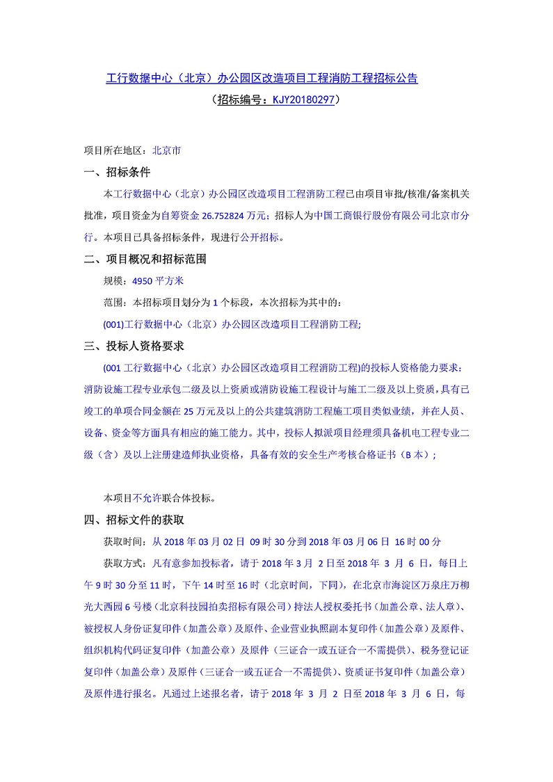 工行数据中心(北京)办公园区改造项目工程消防工程招标公告