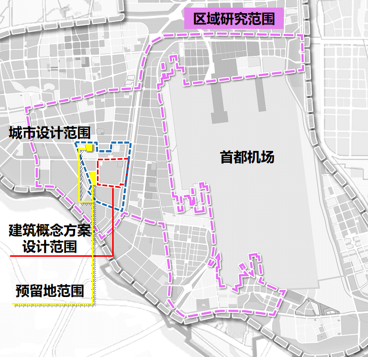 (3)区域研究:在临空经济示范区转型升级的大背景下,结合周边存量土地资源的改造利用,重点在功能布局、公共空间构建、景观塑造、交通体系等方面提出优化意见和意向方案。研究范围约3182公顷。